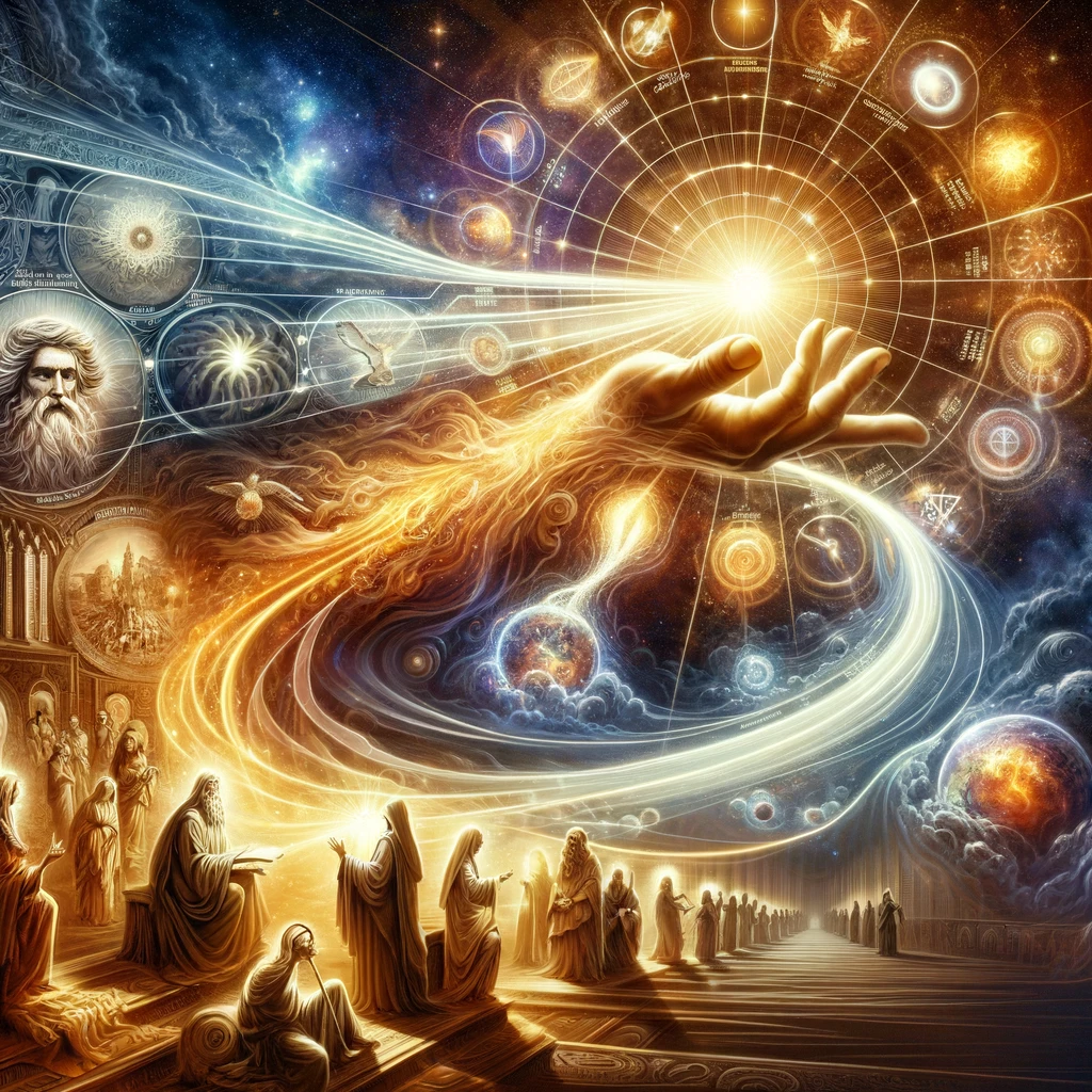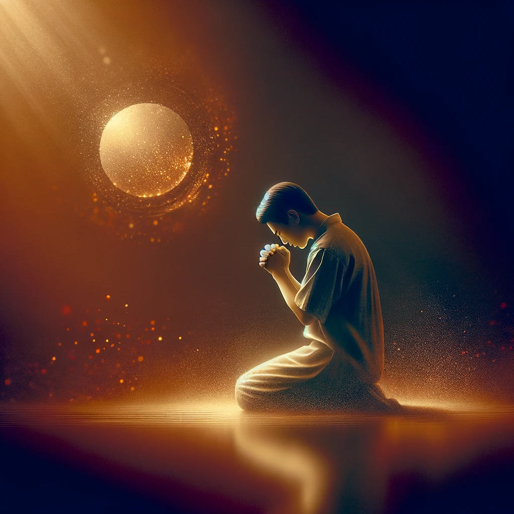 이 이미지는 하나님의 손에서 나오는 빛이 시간을 통해 흐르며 역사적 순간들을 창조하고 영향을 미치는 모습을 표현합니다. 인간 역사의 중요한 순간들이 이 빛 속에 녹아 있으며, 다양한 시대와 문명의 인물들이 경외하는 자세로 이를 바라보고 있습니다. 배경은 시간과 우주를 초월하는 무한한 공간으로, 하나님의 초월적인 능력을 상징합니다. 이 이미지는 모든 것이 하나님의 뜻과 능력에 의해 이루어짐을 강조합니다. / 힘든 상황 속에서도 하나님의 약속을 의지하며 기도하는 한 사람의 모습을 담은 이미지를 생성했습니다. 이 이미지는 비난과 조롱에도 불구하고 평온하고 결연한 표정으로 하나님께 기도하는 인물과, 따뜻한 해질녘 하늘을 배경으로 한 아름다운 장면을 포착합니다. 인물을 감싸 안은 따스한 빛은 하나님의 사랑과 보호를 상징하며, 전반적인 분위기는 희망과 평화를 전달합니다. // 한 사람이 무릎을 꿇고 기도하는 모습을 중심으로 하여 자신의 삶과 마음을 하나님께 바치고 죄를 용서받는 순간을 포착했습니다. 이 인물의 표정과 자세는 회개와 진실한 변화를 추구하는 마음을 반영하며, 주변의 따스한 빛은 하나님의 용서와 사랑을 상징합니다. 배경은 간결하고 평화로운 분위기로, 영적 여정과 하나님의 은혜 및 용서의 메시지에 초점을 맞춥니다.