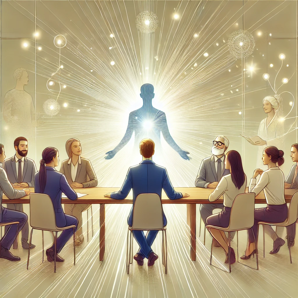 미팅 속에서 당신이 선한 영향을 주며 주변에 따뜻한 분위기를 전하는 모습을 표현했습니다. 이 그림이 당신의 하루를 떠올리며 동기부여가 되길 바랍니다.