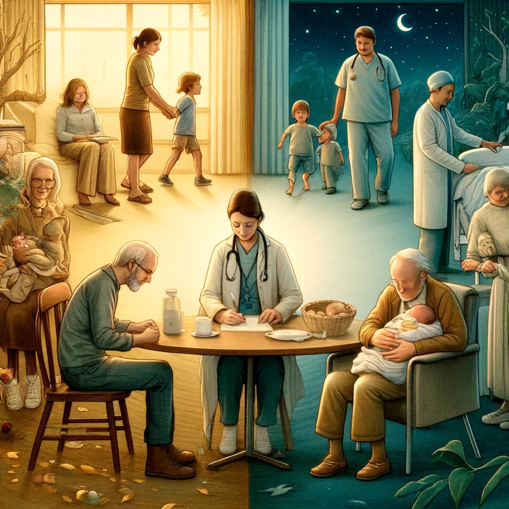 첫 번째 이미지는 예수님의 제자로서 삶을 살아가는 모습을 포착하며, 다양한 배경과 연령대의 사람들과 함께 도우며, 공감하고, 삶을 나누는 순간들을 묘사합니다. 이러한 장면들은 제자가 복음을 전하는 것을 넘어서 자신의 삶을 통해 사랑과 복음의 메시지를 실천하고 있음을 보여줍니다. 이는 영혼을 진심으로 사랑하고, 자신의 삶을 개방하며, 주변 사람들과 깊이 나누는 예수님의 제자로서의 아름다운 삶을 나타냅니다. / 두 번째 이미지는 작가가 주변 세계의 아름다움을 관찰하고 글로 영감을 받는 모습을 표현합니다. 작가는 다양한 긍정적인 인간 관계와 자연의 아름다움에서 영감을 얻어, 이를 기록하고 있습니다. 이는 품위 있는 글쓰기와 웅변의 비법이 주변의 아름다움을 인지하고 이를 표현하는 데 있음을 나타냅니다. / 세 번째 이미지는 세상의 권세와 하나님의 권위 사이에서의 선택을 대조적으로 나타냅니다. 한쪽은 세상적 권력의 상징들로 장식된 길을 따라가는 사람들을 보여주며, 다른 한쪽은 평화롭고 밝은 빛이 비추는 길을 따라 십자가로 가는 사람들을 보여줍니다. 이는 우리가 복종해야 하는 것이 세상 권세가 아니라 하나님임을 시각적으로 강조합니다.